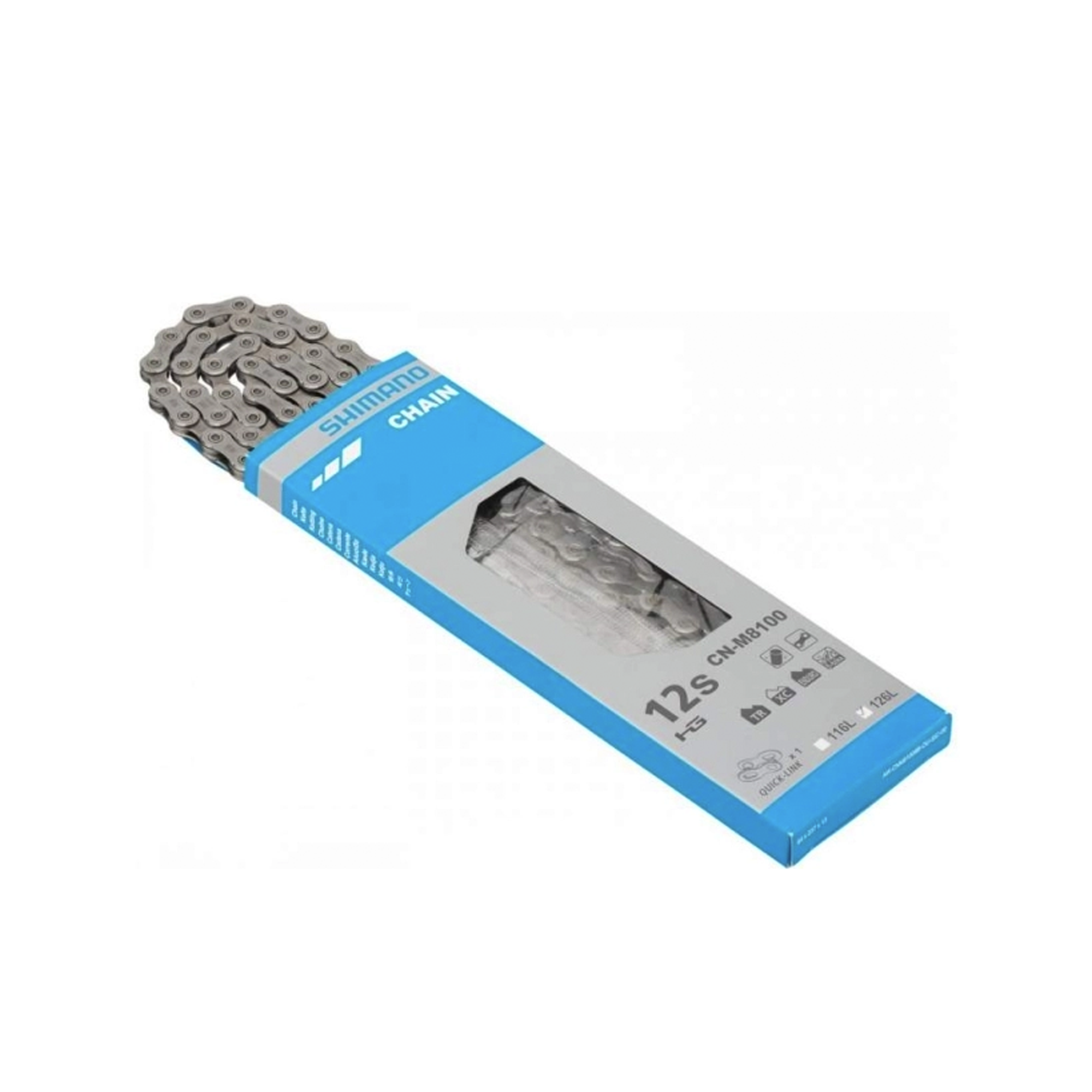 La cadena M8100 mejora la retención gracias a una parte extendida de la placa interior. La nueva cadena esta equipada con montaje rápido de eslabones y tratamiento SIL-TEC para una mayor durabilidad en montaña. Su diseño exclusivo garantiza cambios suaves y resistentes. Es compatible con transmisiones de 12 velocidades