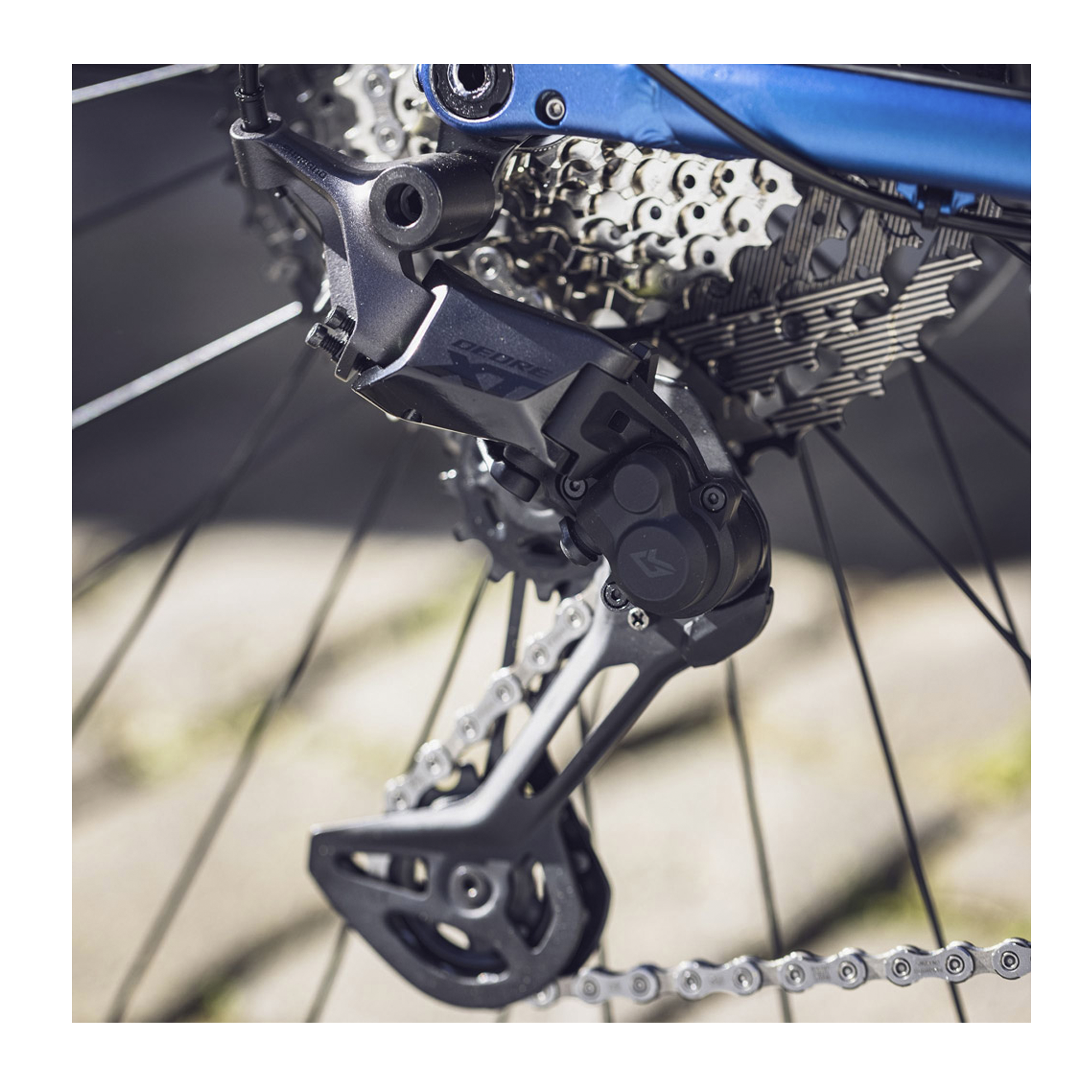 El cambio DEORE XT M8130 LINKGLIDE de 11 velocidades con tecnología SHADOW+ deslumbra con su funcionamiento suave y decisivo. El amplio espacio para la cadena y su estabilidad en terrenos de montaña difíciles reduce los saltos de cadena.