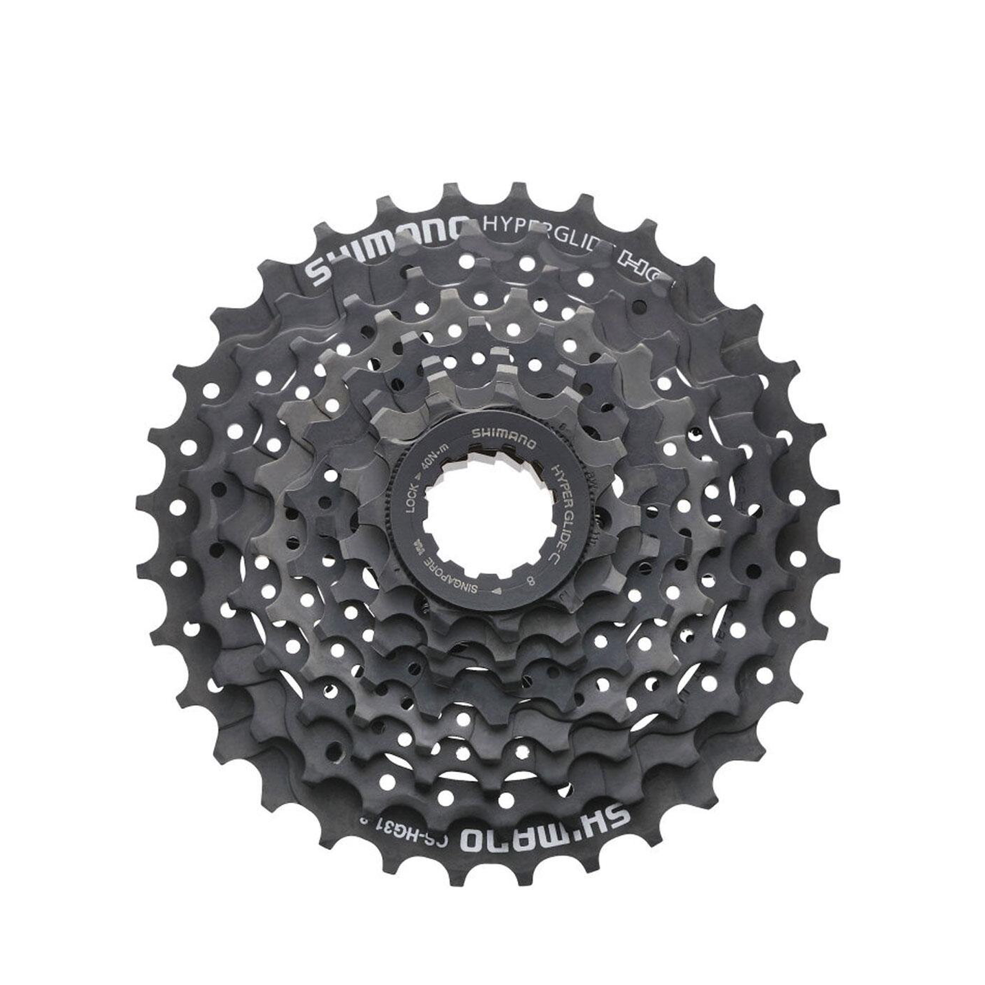 El cassette de 8 velocidades SHIMANO TOURNEY TX cuenta con la tecnología HYPERGLIDE para un rendimiento del cambio fiable.
