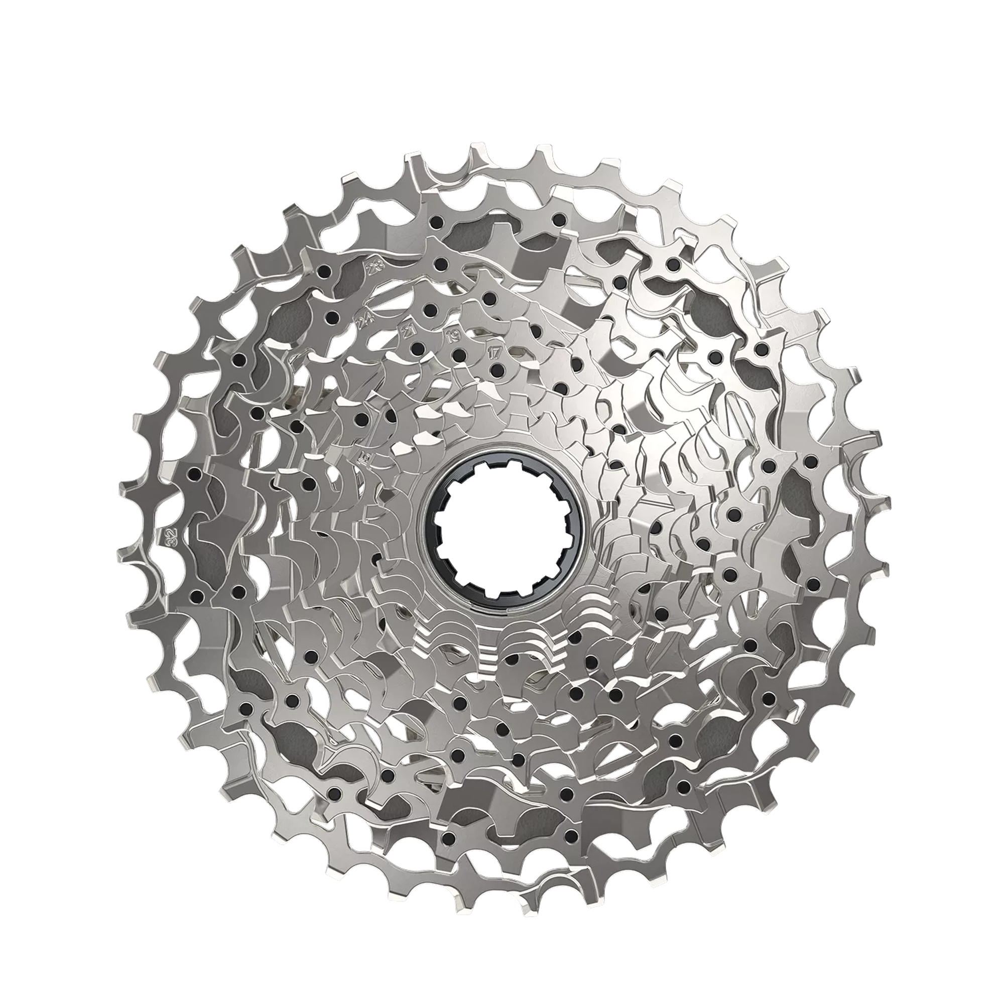Nuestro cambio más avanzado, el X-Range, que emplea pequeños saltos entre platos y un amplio rango de 12 velocidades en un cassette que comienza en los 10 dientes, ahora está disponible en el Rival. Esto incluye nuevos cassettes con un cambio suave y preciso en rangos adecuados para la carretera, el gravel, y todo lo que te propongas.